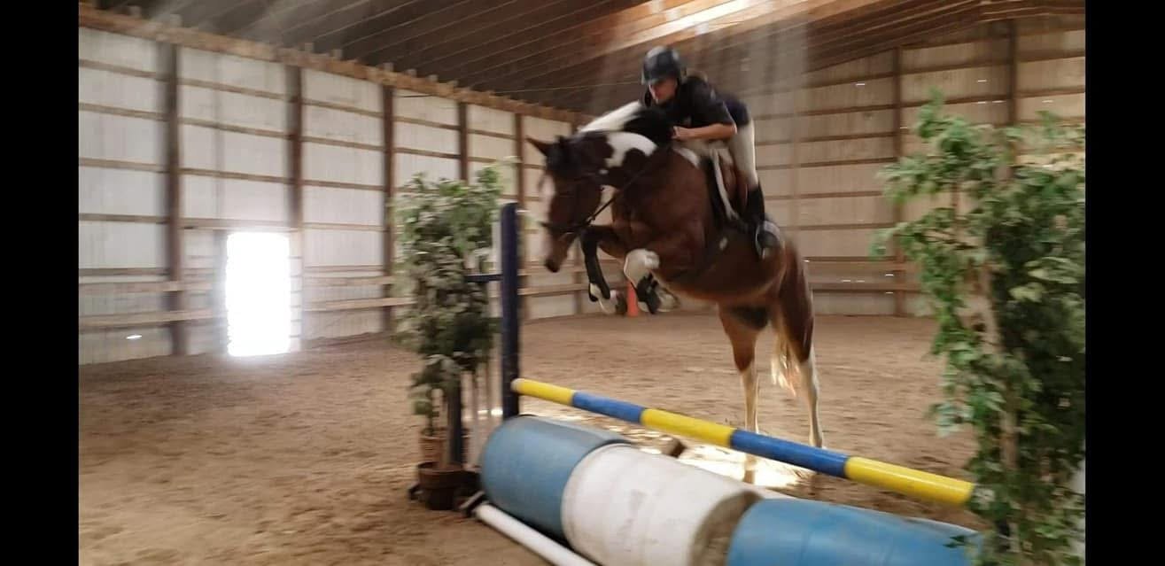 Summer is a 2018 OTTB gelding who completed retraining program in 2024 and was recently adopted to be a Hunter Jumper.