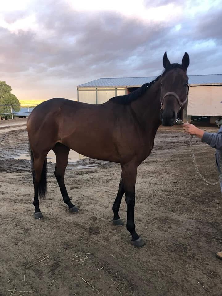 Kris Who is a 2015 OTTB gelding who is best suited as a companion with potential for light riding.