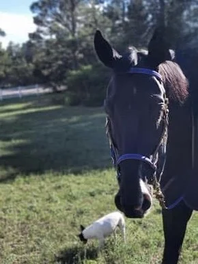 Nuevo Comienzo (Comi) is a 13 year-old Criollo Thoroughbred-cross mare who was used as a polo pony in Argentina. She came to EER in critical need of kissing spine surgery. Her transformation is nothing short of extraordinary. This versatile mare is now a joy to ride!
